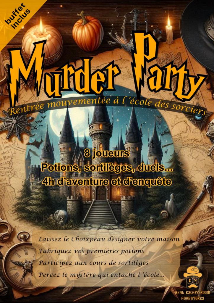 Réserver votre créneau murder party école de magie ici